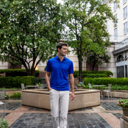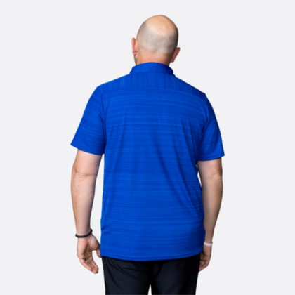 This men's sportswear polo features moisture-management properties and a polyester interlock textured knit to keep you moving.