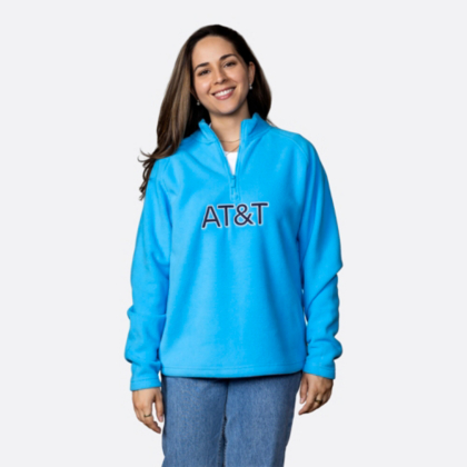 Lightweight warmth, refined style. This micro fleece pullover features a classic fit, long sleeves, and a 1/4 zip closure. Finished with an embroidered AT&T design, it offers comfort and style in one versatile layer.