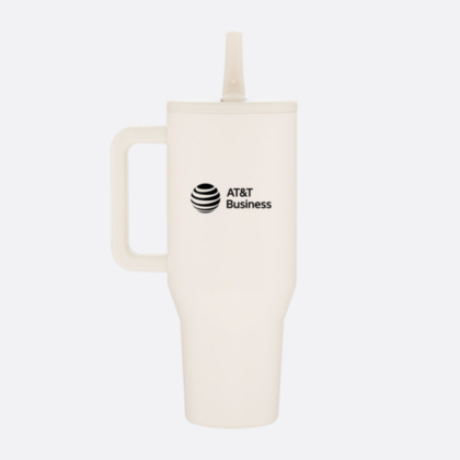 The HydroJug Traveler 32oz thermal mug is made for serious hydration with durable performance. Constructed from 18/8 stainless steel with double wall construction and copper vacuum insulation, it keeps cold beverages chilled for hours. It features an ambidextrous threaded lid with a matching flip-up spout, a soft straw for easy sipping, and a wide ergonomic handle for effortless carrying. Finished with a durable powder coated exterior for a secure, stylish grip.