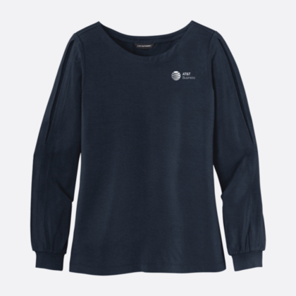 This AT&T Business Top is a blend of modern style and comfort. Featuring elevated feminine details such as a jewel neckline and upper arm side openings.