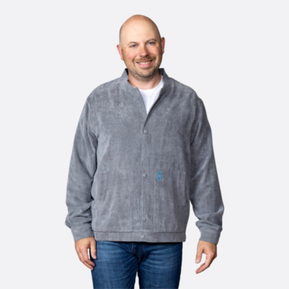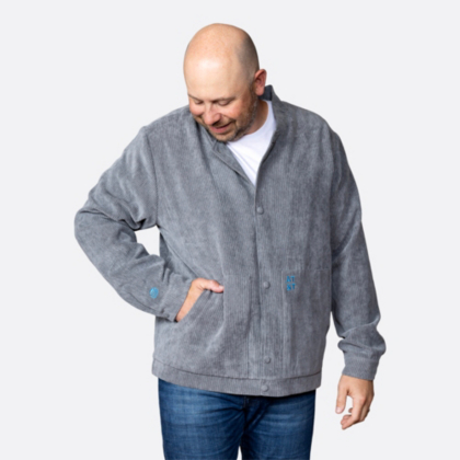 Stay warm and stylish in this versatile grey corded jacket, perfect for cool-weather layering and elevating your everyday look!