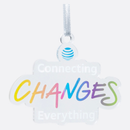 Celebrate the holidays with the AT&T Connecting Changes Everything™ ornament. Designed with clear resin and pop of a multicolored design. This modern ornament shows off AT&T in a fun and festive way!