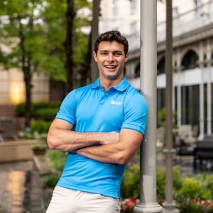 Can't go wrong with classic AT&T blue. This men's short sleeve polo will take you from the office to the front 9 seamlessly.