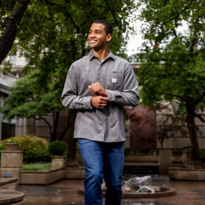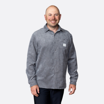 This sleek grey button-up shirt pairs timeless tailoring with a modern edge, finished with a minimalist AT&T patch for a touch of brand pride.