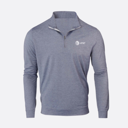 Soft and smooth as butter! This light navy-grey performance quarter zip is made with 4 way stretch and is wicking to keep you cool and comfortable in any activity. Complete with an embroidered AT&T globe logo on the chest.