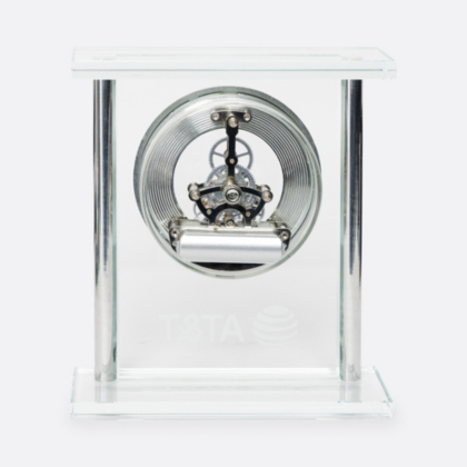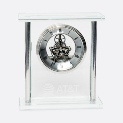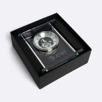 Celebrate and reflect on your time at AT&T with this beautiful mantle clock with silver skeleton movement. Perfect for displaying at your home or office.