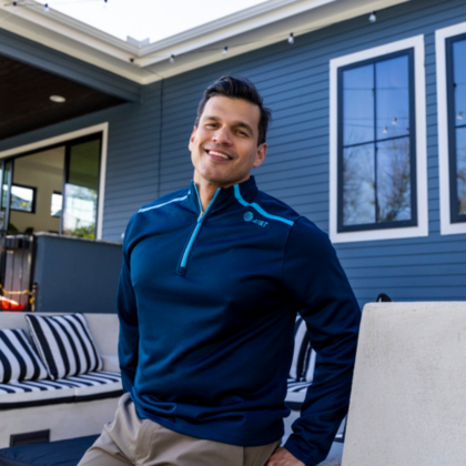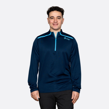 A quarter zip is a necessity all year round. This men's quarter zip pullover is complete with AT&T blue detailing on a true navy fabric.
