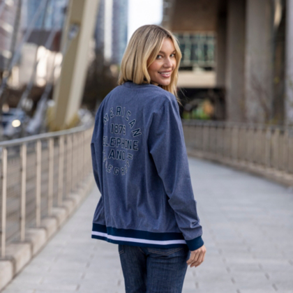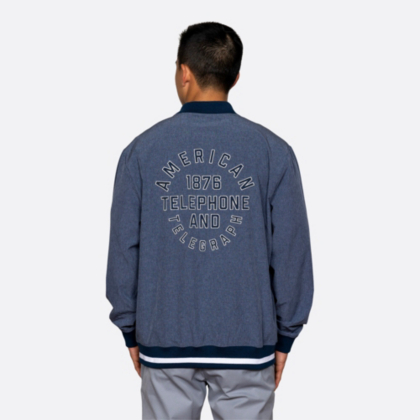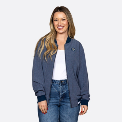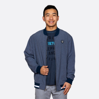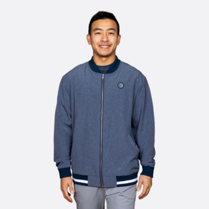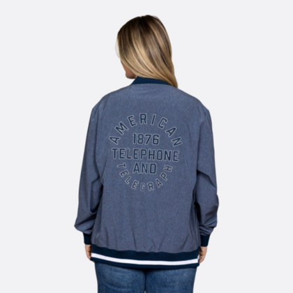 In a true navy heather, this unisex classic bomber jacket features 4-way stretch fabric and is perfect for layering. Finished with an AT&T globe logo.