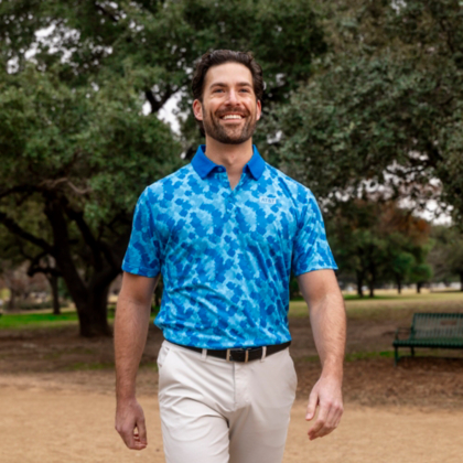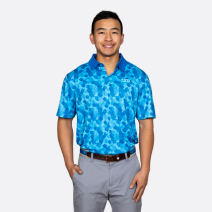 Step out in confidence in this men's polo. Featuring an all-over pattern and contrast collar, this modern fit polo is a stylish option for work and beyond.