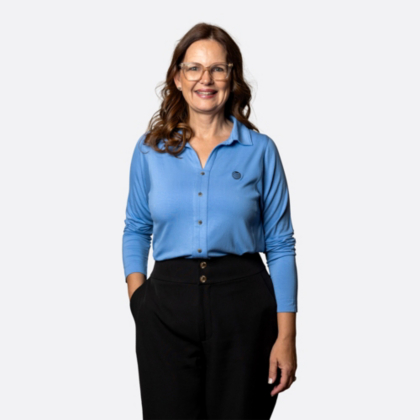 This soft, button‑down long‑sleeve top brings effortless polish with its smooth drape and flattering neckline. Finished in a serene blue hue with a subtle embroidered detail, it adds a touch of everyday elegance to any wardrobe.