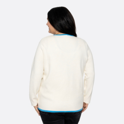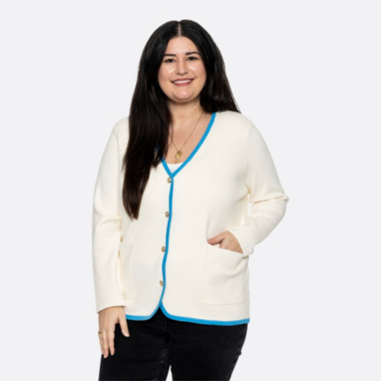 Can't go wrong in a cardigan. This slightly oversized women's cardigan is perfect for layering for a super cute office day. Finished with a touch of AT&T blue on the binding.