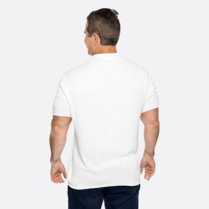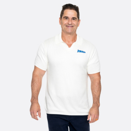 Go for an elegant modern look in this sweater knit polo. This men's polo features embroidery on the left chest and a soft knit fabric.
