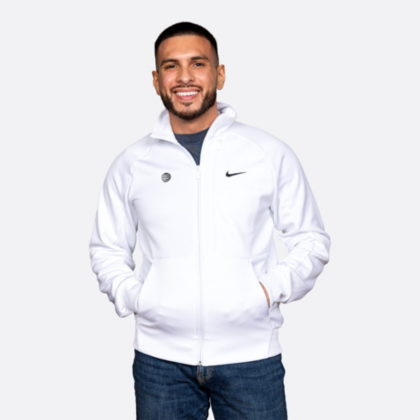 Get out there and keep moving! This unisex Nike full zip jacket features a zippered left chest pocket and front pockets to keep you moving.