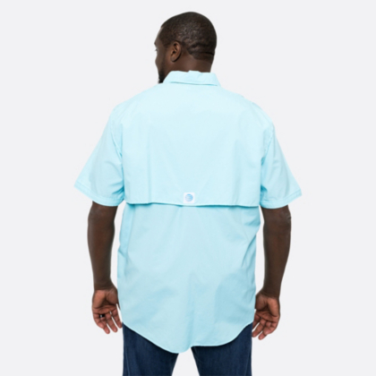 This lightweight nylon camp shirt dries fast & keeps you cool. The back yoke flap and woven label velcro closure make it perfect in hot, humid weather.