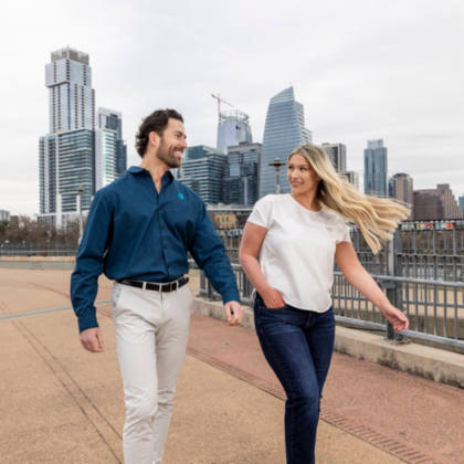 This men's long sleeve button down shirt is a timeless style that is essential to have in your wardrobe. Perfect for work meetings and beyond. Finished with an embroidered AT&T globe logo on the left chest.