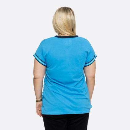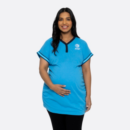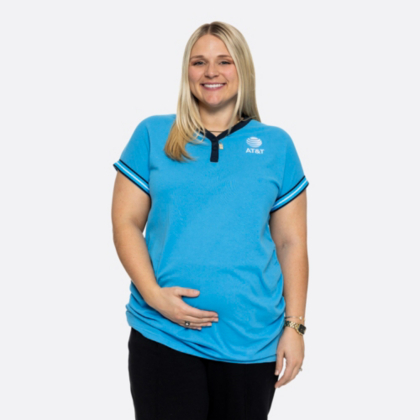 Look your best in blue with the Almeta. Made from a cozy pique fabric blend, this Henley features a classic 2-button placket, a fun contrast neckline, and playful stripe trims on the sleeves. With an embroidered AT&T globe logo on the chest and back neck, you will show up as the expert in the room. Designed to comfortably fit your growing baby bump.