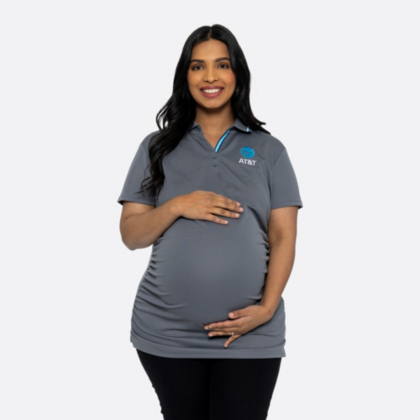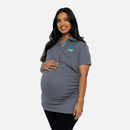 Step up your style game with the Bailey short-sleeve polo, designed to flatter every figure. Featuring the iconic AT&T logo and a sleek ribbed collar with stylish contrast stripes, this polo combines comfort and sophistication effortlessly so you look and feel your best! Designed to comfortably fit your growing baby bump.