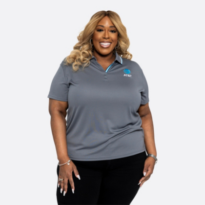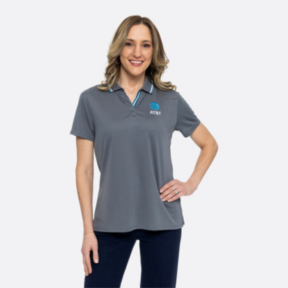 Step up your style game with the Bailey short-sleeve polo, designed to flatter every figure. Featuring the iconic AT&T logo and a sleek ribbed collar with stylish contrast stripes, this polo combines comfort and sophistication effortlessly so you look and feel your best!