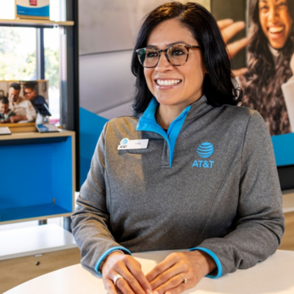 - AT&T globe print on back neckline
