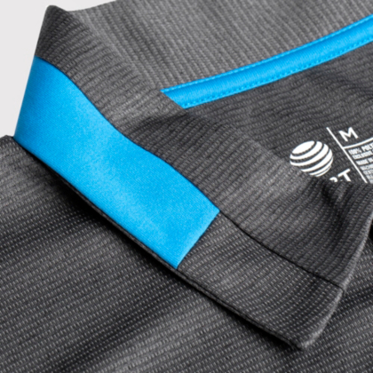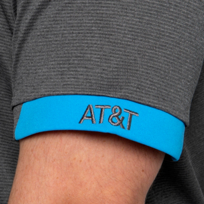 This basic fit polo has elevated details such as contrasting insets, custom AT&T buttons, and novelty texture performance fabrication.