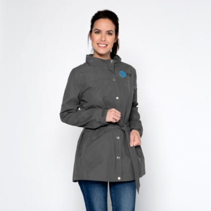 This womens 3-in-1 jacket helps you fight against the elements while still looking cool and representing your AT&T pride! This jacket has all of the things: water resistant fabrication, snap-in detachable honeycomb fleece liner, packable hood, dual closure, pockets, waist tie, and AT&T logos on all pieces!