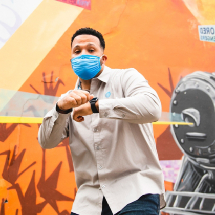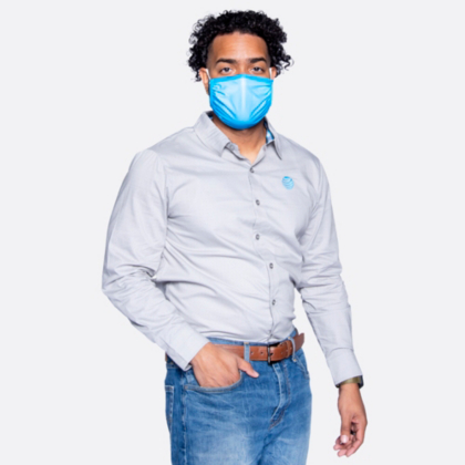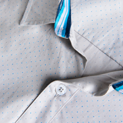 Put together with a hint of blue. The Owen is a classic grey button-down with bits of blue detailing the fabric so you can look your best showing off your Team Colors.