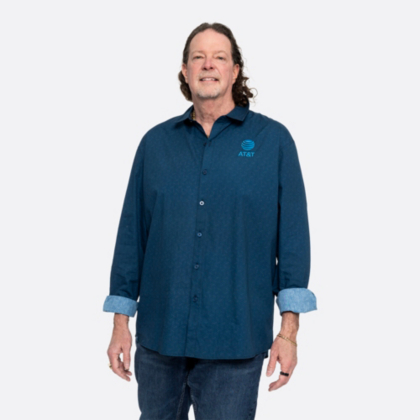 Amp up your style with the Parkmont Long Sleeve Button Down. Featuring a fun yet subtle geometric all-over print and an embroidered AT&T logo, this shirt combines flair and comfort.