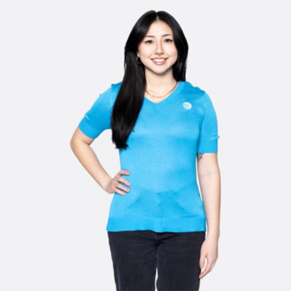 Elevate your style with the Phoenix - a chic short sleeve sweater in striking AT&T blue, complete with an embroidered AT&T globe.