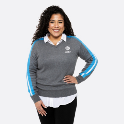 Made from ultra-soft fabric and elevated details including a v-neck, contrast sleeves, and embroidered AT&T globe, the Sherwood sweater is the perfect mix of comfort and style. Easily dress up or down to match your desired look.