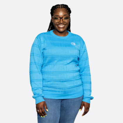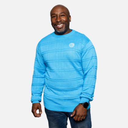 Achieve both comfort and style with the Del Mar - a contemporary jacquard sweater in bold AT&T blue, featuring a classic embroidered AT&T globe.