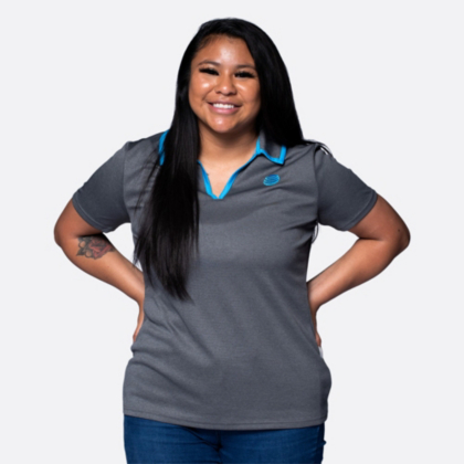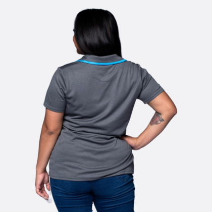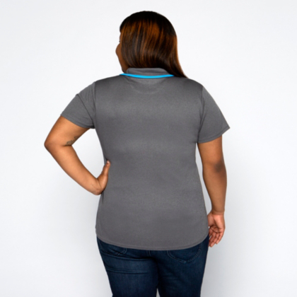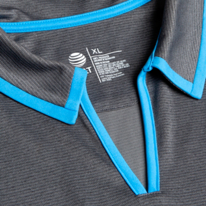 A fashionable update to the women's polo, this item has contrast AT&T blue trim, a flattering v-neck design, and novelty textured performance fabrication.