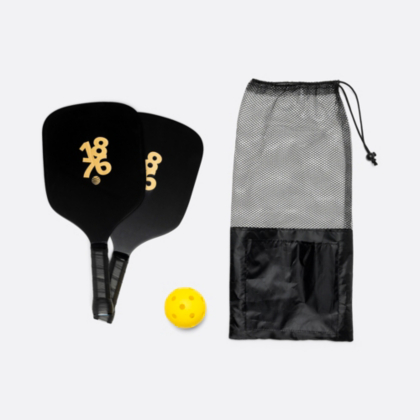 This pickleball set is the complete package for pickleball enthusiasts. This set comes with two regulation-size pickleball paddles and one ball, featuring an ergonomic grip design for comfortable play. The black paddle, when laser engraved, reveals the beautiful wood underneath, adding a touch of elegance. Packaged in a convenient carrying case. Get ready to elevate your game!
