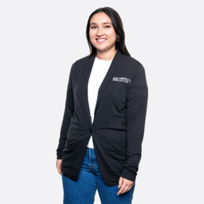 With a drape that flatters without clinging and a princess seam, this feminine cardigan fits comfortably while letting you look your best.