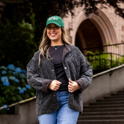 Create the perfect effortless look with this comfy boxy-fit quilted jacket. Complete with an AT&T ampersand embroidered patch.